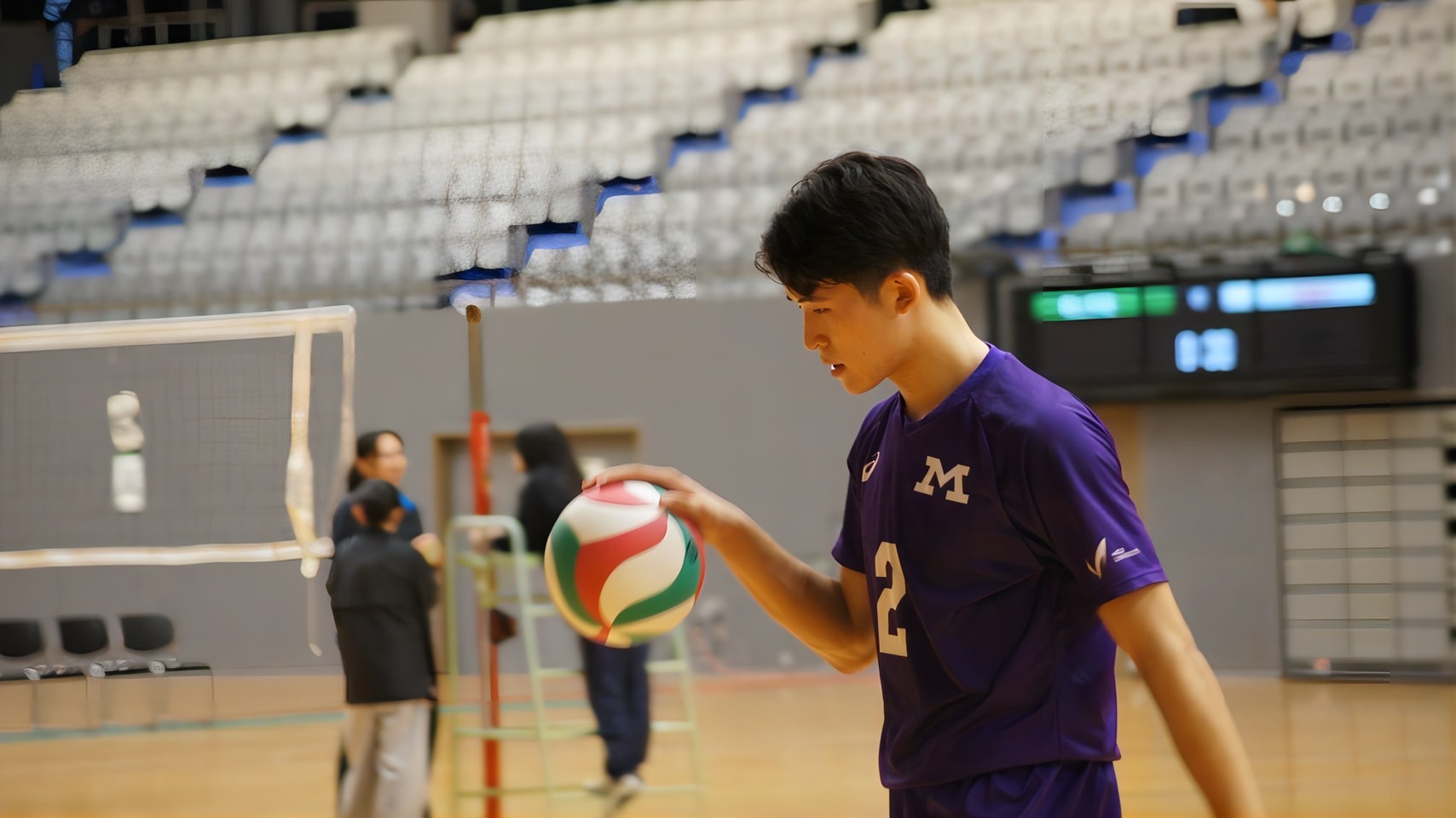 2年生の頃からミドルブロッカーとして出場しており、3年生からはオポジットに転向しました。